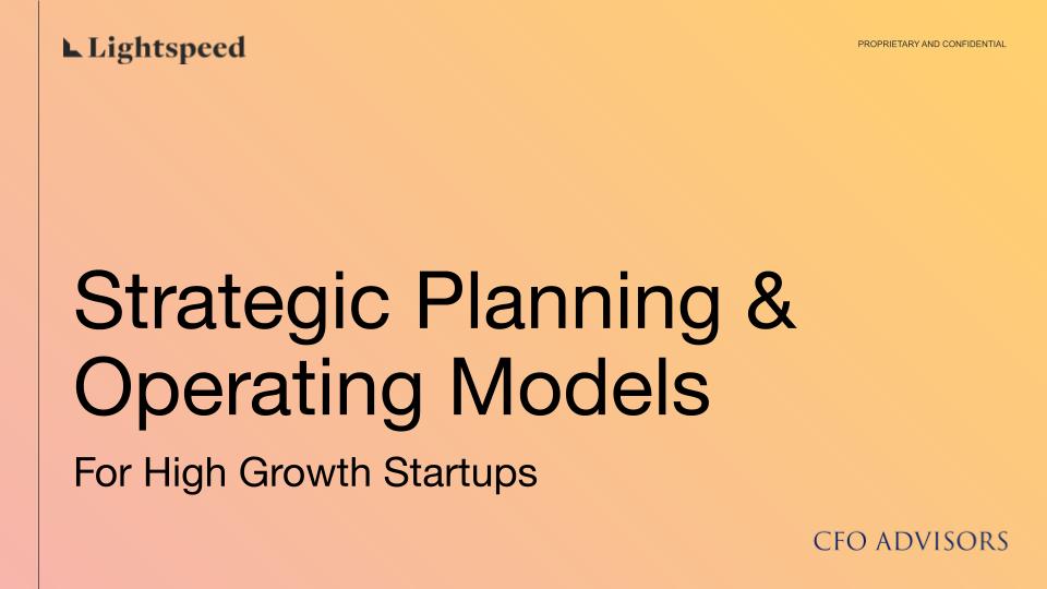 Lighstpeed x CFO Advisors: Strategic Planning & Operating Models For High Growth Startups