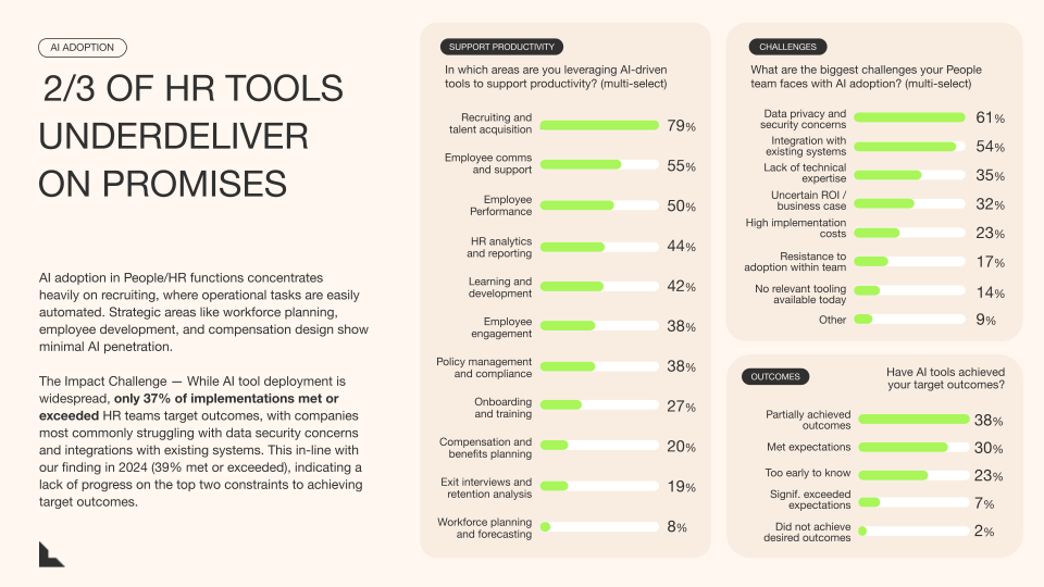 What This Means: The HR tech stack isn't ready for AI. Most tools were built for manual workflows, and bolting on AI creates friction rather than efficiency.