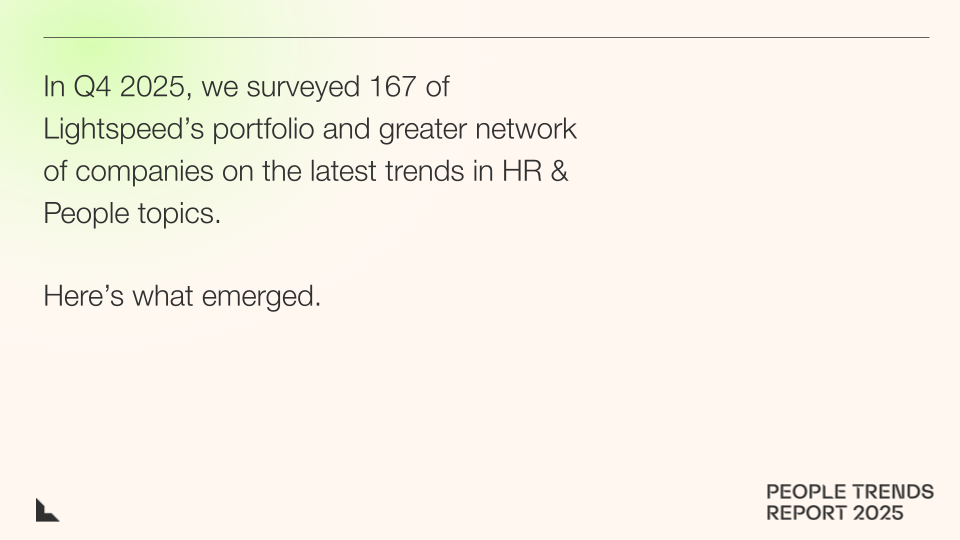 In Q4 2025, we surveyed 167 of Lightspeed’s portfolio and greater network of companies on the latest trends in HR & People topics. Here’s what emerged.